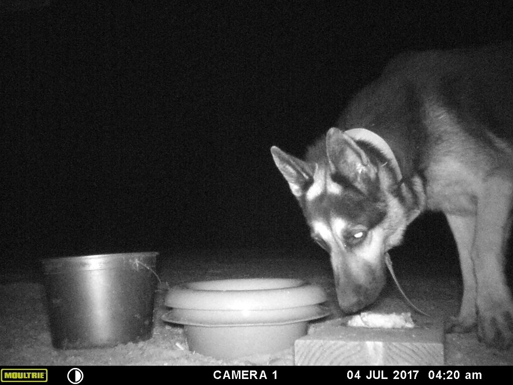 nights I put a game camera where Paco tracks were observed but the only night the food was completely