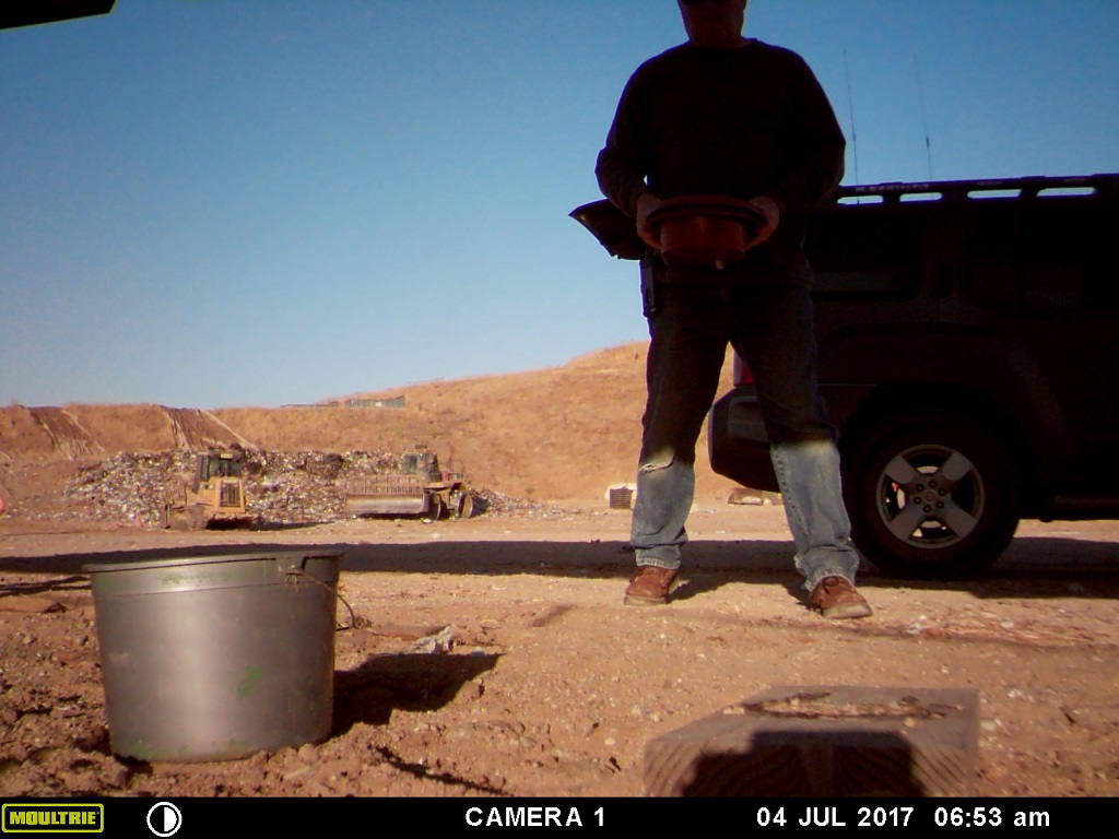 headed to the landfill to set the trap where the game camera had been located. It was a hot day, over 100f.