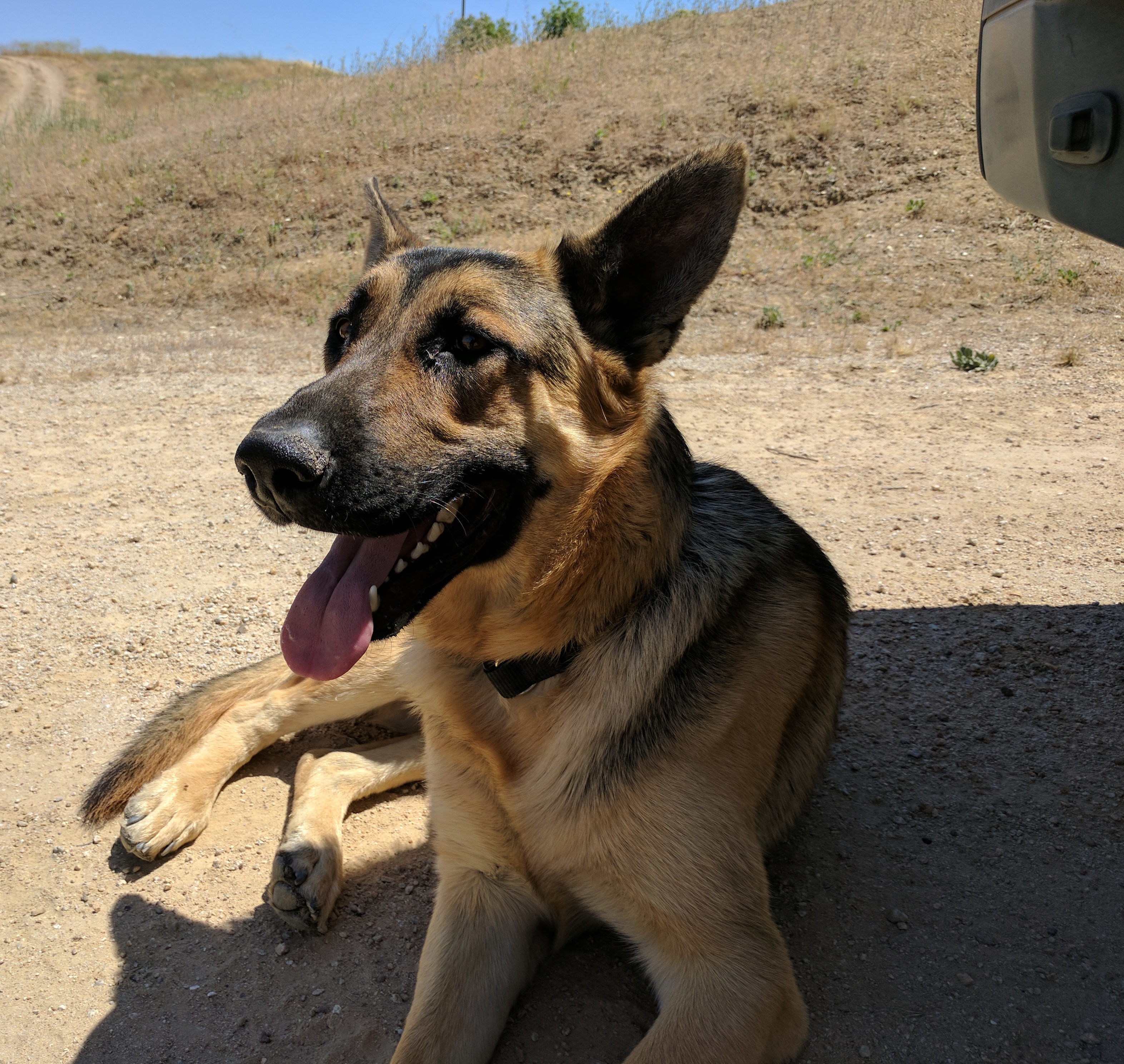 German Shepherd lost around the Bonel Ranch in rural Paso Robles. My husband works out at the dump and