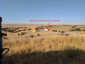 After setting the trap I went up a hill about 100 yards away as a vantage point to wait and watch for Paco. I